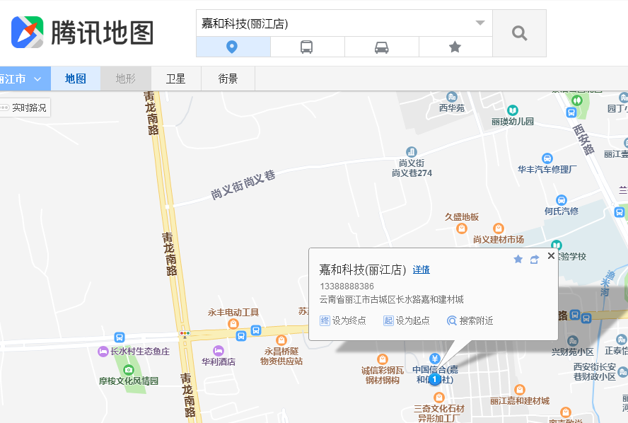 方法三:通過騰訊地圖搜索關(guān)鍵字:麗江嘉和網(wǎng)絡(luò)科技有限公司”找到我公司。