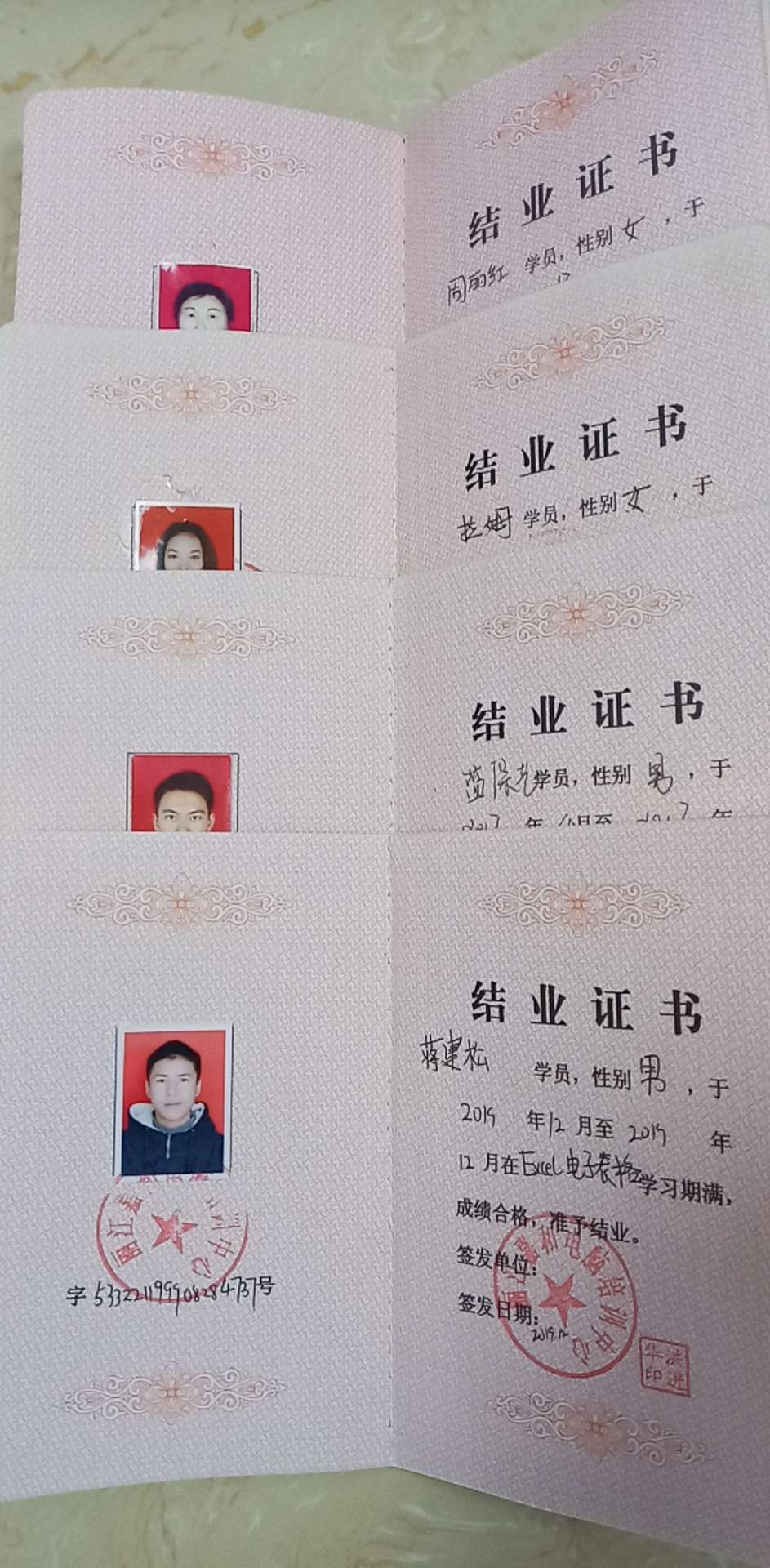 成績合格。請學員憑身份證來我司領(lǐng)取畢業(yè)證書!