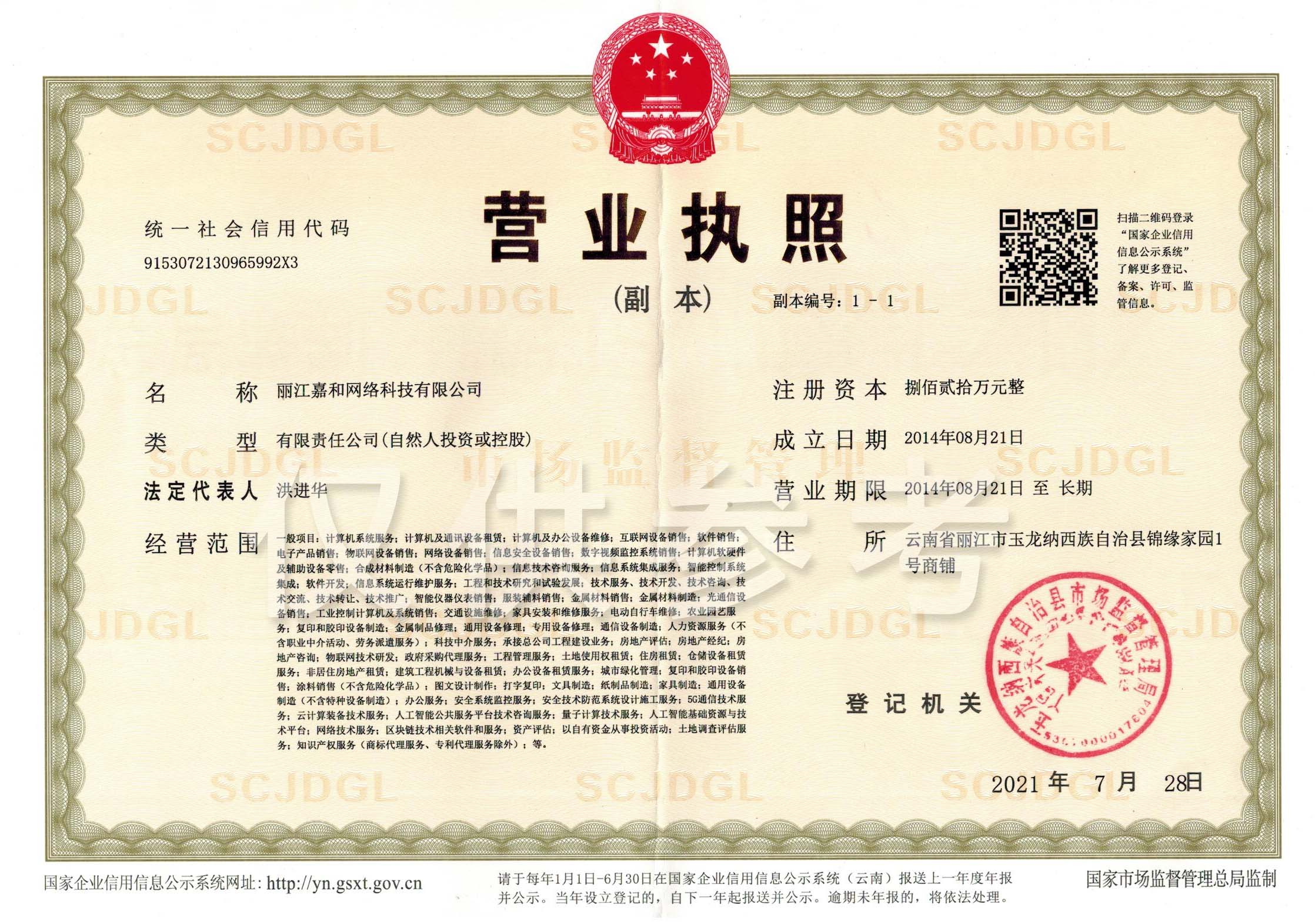 關(guān)于麗江和府酒店有限公司英迪格酒店電子監(jiān)控安防合格證下證通知
