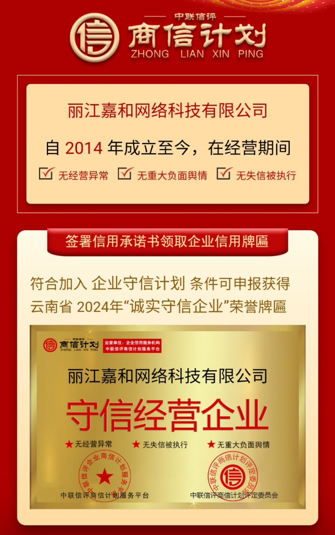 熱烈慶祝我司榮獲云南省2024誠實(shí)守信企業(yè)榮譽(yù)