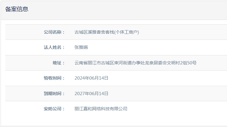 關(guān)于古城區(qū)溪雅香舍客棧(個體工商戶)電子監(jiān)控安防合格證下證通知