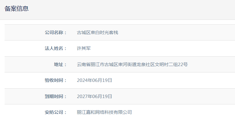 關(guān)于古城區(qū)束白時(shí)光客棧電子監(jiān)控安防合格證下證通知