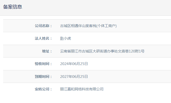 關于古城區(qū)相遇伴山度客棧(個體工商戶)電子監(jiān)控安防證下證通知