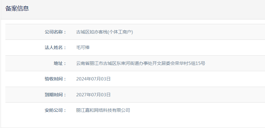 關(guān)于麗江和府酒店有限公司英迪格酒店電子監(jiān)控安防合格證下證通知