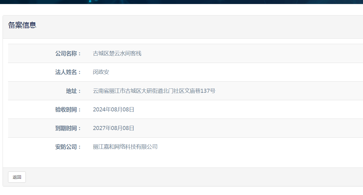 關(guān)于古城區(qū)楚云水間客棧電子監(jiān)控安防合格證下證通知