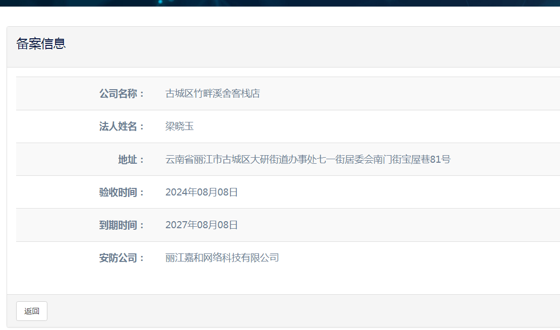關于古城區(qū)竹畔溪舍客棧店電子監(jiān)控安防合格證下證通知