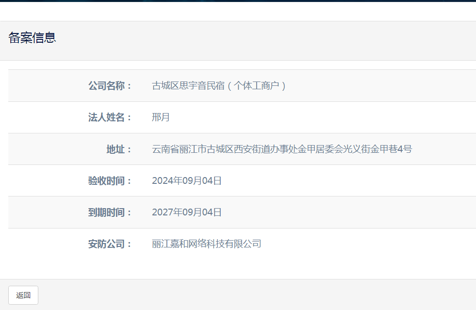 關于古城區(qū)思宇音民宿(個體工商戶)電子監(jiān)控安防合格證下證通知