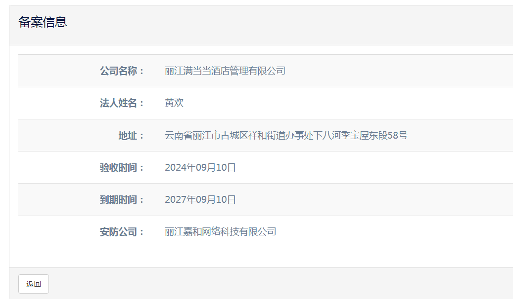 關(guān)于麗江滿當(dāng)當(dāng)酒店管理有限公司電子監(jiān)控安防合格證下證通知