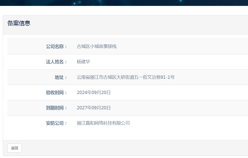 關(guān)于麗江和府酒店有限公司英迪格酒店電子監(jiān)控安防合格證下證通知