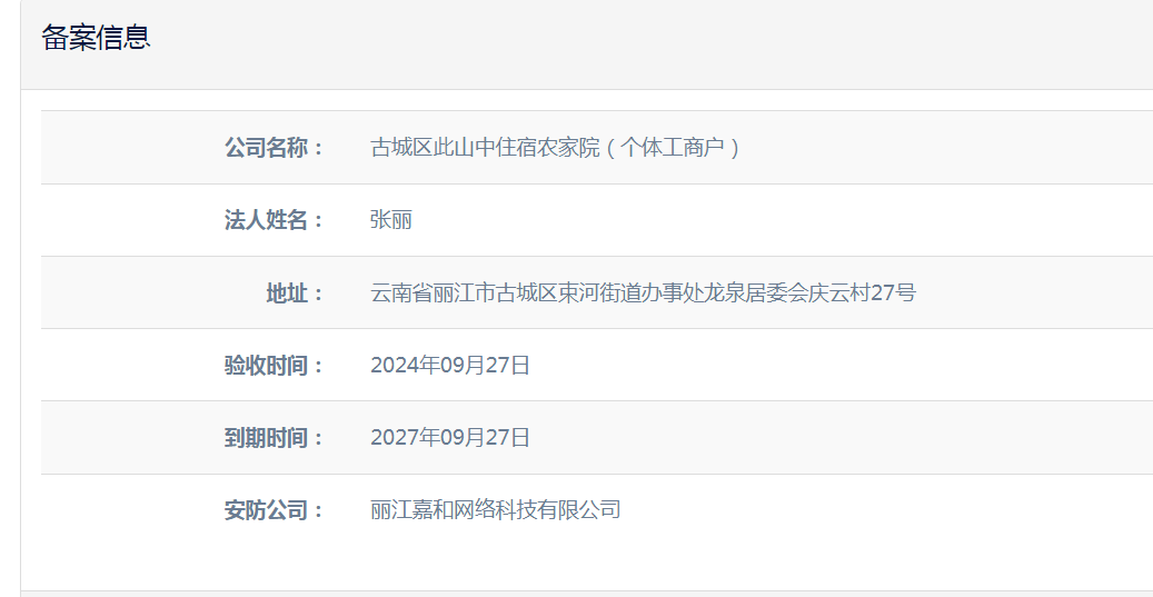 古城區(qū)此山中住宿農(nóng)家院(個體工商戶)電子監(jiān)控安防合格證下證通知