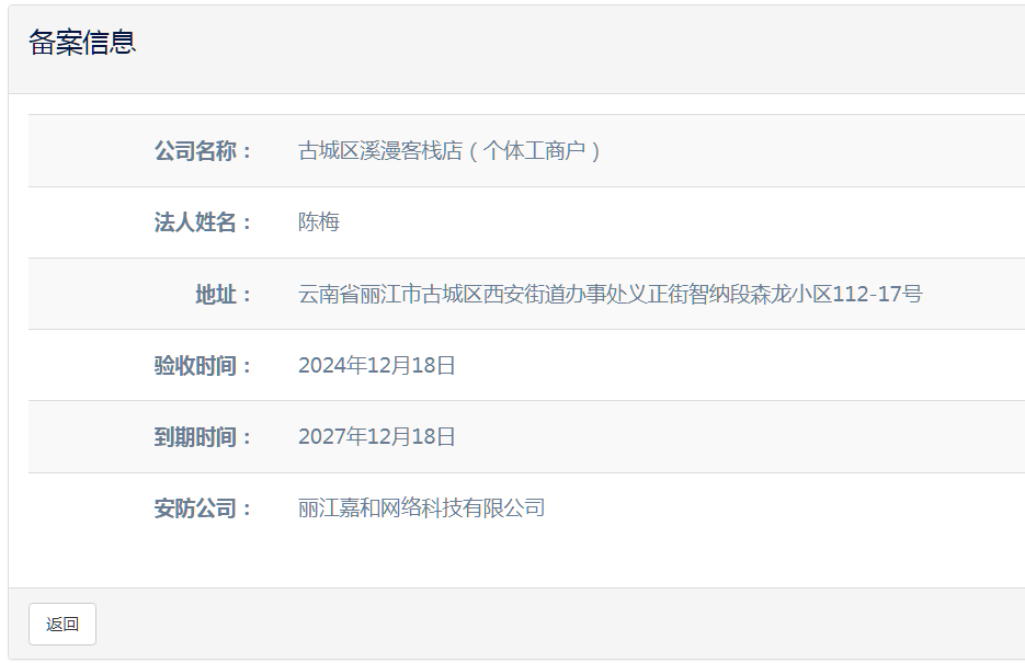 關(guān)于麗江和府酒店有限公司英迪格酒店電子監(jiān)控安防合格證下證通知