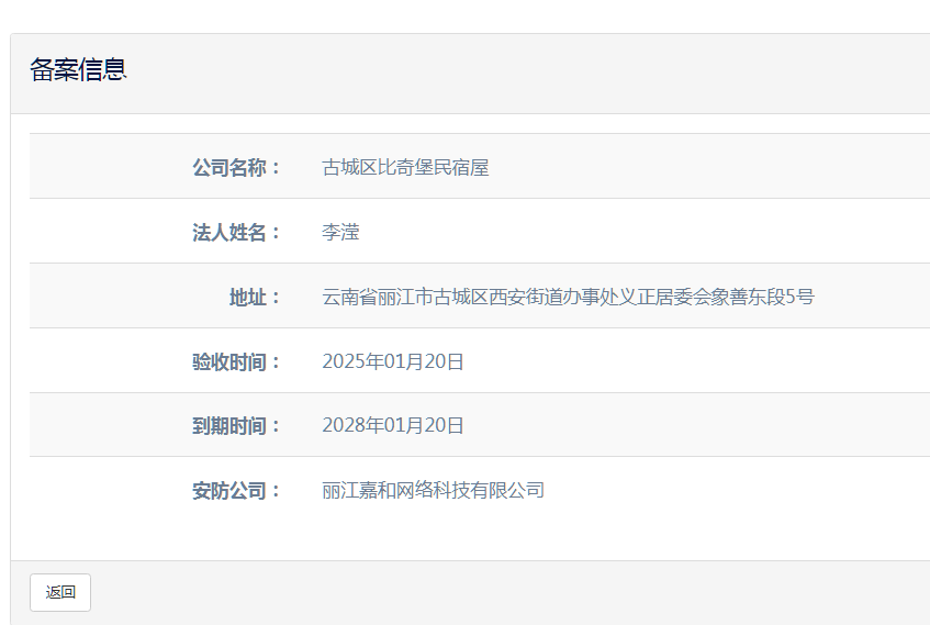 關(guān)于麗江和府酒店有限公司英迪格酒店電子監(jiān)控安防合格證下證通知