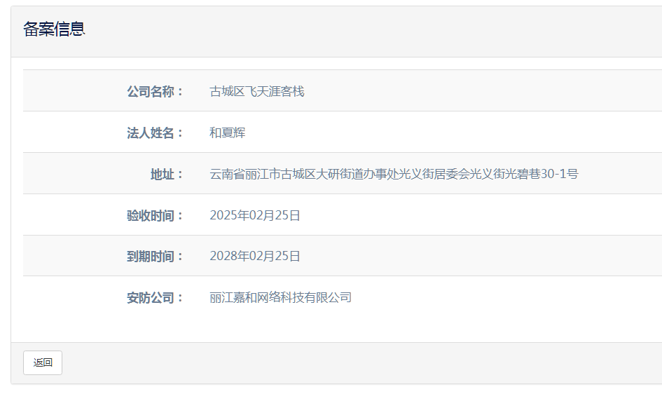 關(guān)于麗江和府酒店有限公司英迪格酒店電子監(jiān)控安防合格證下證通知