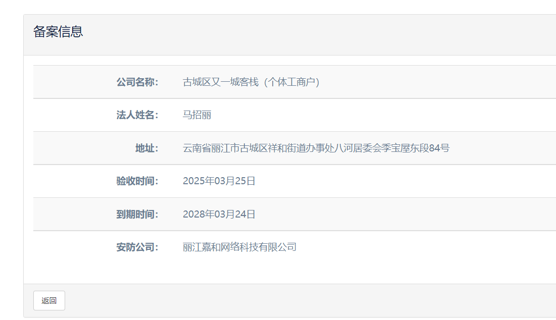關(guān)于麗江和府酒店有限公司英迪格酒店電子監(jiān)控安防合格證下證通知