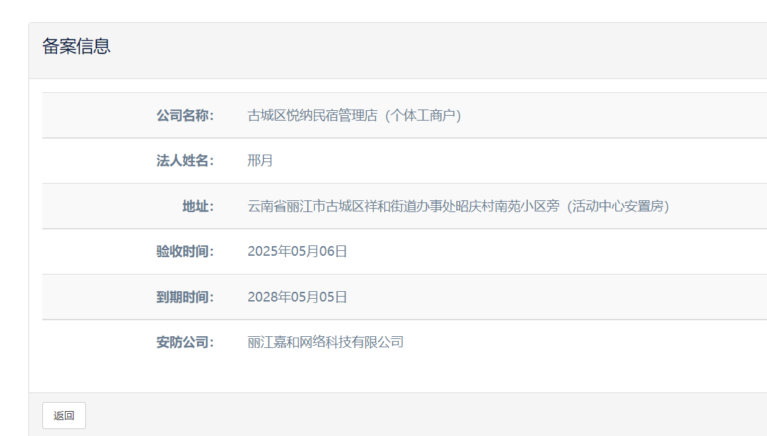 關(guān)于古城區(qū)悅納民宿管理店(個(gè)體工商戶)電子監(jiān)控安防合格證下證通知