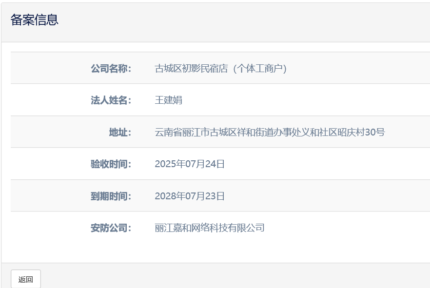關(guān)于古城區(qū)初影民宿店(個(gè)體工商戶)電子監(jiān)控安防合格證下證通知