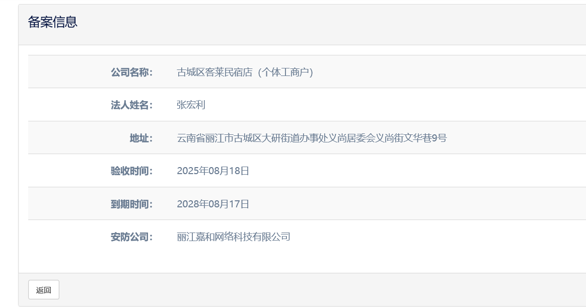 關(guān)于古城區(qū)客萊民宿店(個體工商戶)電子監(jiān)控安防合格證下證通知