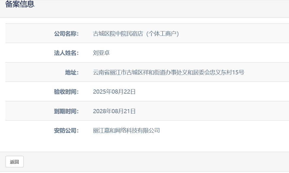 關(guān)于古城區(qū)院中院民宿店(個體工商戶)電子監(jiān)控安防合格證下證通知