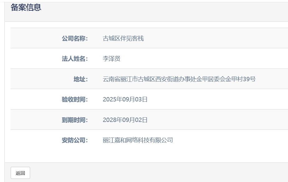 關(guān)于古城區(qū)伴見客棧電子監(jiān)控安防合格證下證通知