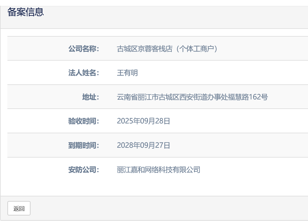 關(guān)于麗江和府酒店有限公司英迪格酒店電子監(jiān)控安防合格證下證通知